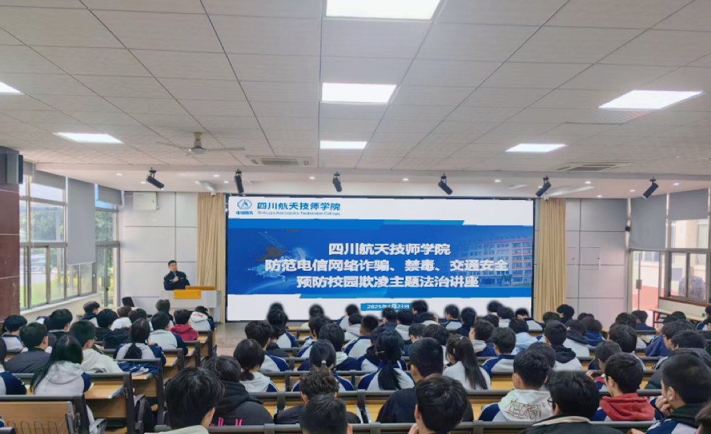 查看详情 时间:2025年10月31日为深入贯彻落实法治校园建设要求,切实增强师生法治观念与自我保护能力,四川航天技师学院于2025年10月30日邀请龙泉驿区北干道派出所民警范继平到校针对防范电信网络诈骗、禁毒、交通安全、预防校园欺凌等开展了主题鲜明、内容丰富的法治教育讲座,为全校师生送上“安全知识大餐”,筑牢校园安全防线。讲座紧扣青少年成长特点与校园安全热点,采用“案例剖析+法条解读+互动答疑”的模式,让法律知识入脑入心。在宣讲中,范警官..…