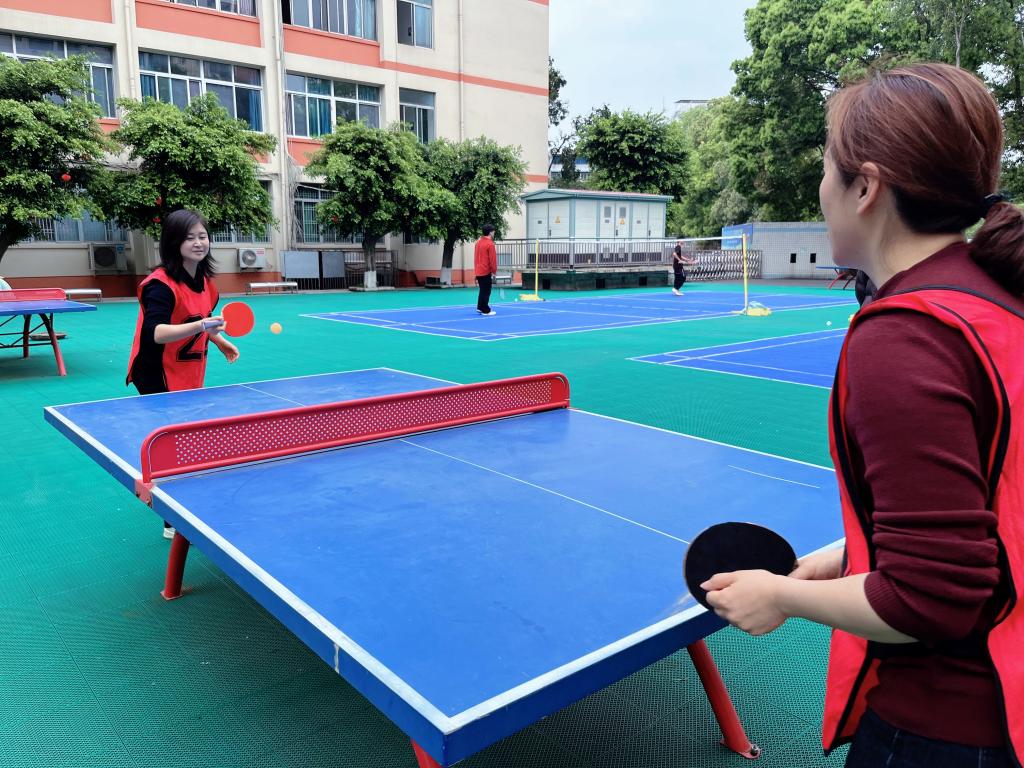 赛场上,老师们褪去讲台上的沉稳,换上轻便的运动装备,精神抖擞、斗志昂扬,每一个动作都充满力量与专注。羽毛球场上,白羽轻盈穿梭,扣杀吊球尽显娴熟。乒乓球台前,银球飞速旋转,推挡提拉扣人心弦,清脆的球声伴随着阵阵喝彩,成为赛场最动听的旋律。篮球场上,队员们默契配合、攻防有序,奔跑投篮奋勇争先,赛场边呐喊欢呼此起彼伏,气氛热烈。