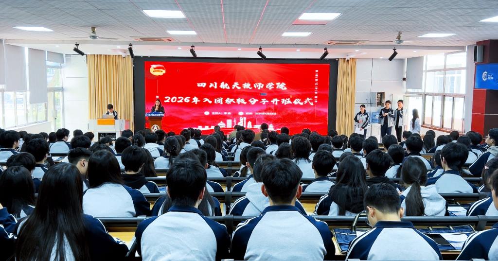 为切实加强入团积极分子培养教育工作,严把团员发展“入口关”,4月13日,四川航天技师学院2026年入团积极分子培训班开班仪式在南阶梯教室隆重举行。校团委副书记赵书瑜、学院党支部副书记陈水松出席仪式,团总支负责人李鑫老师主持开班仪式,全体入团积极分子齐聚一堂,共同开启成长之旅。