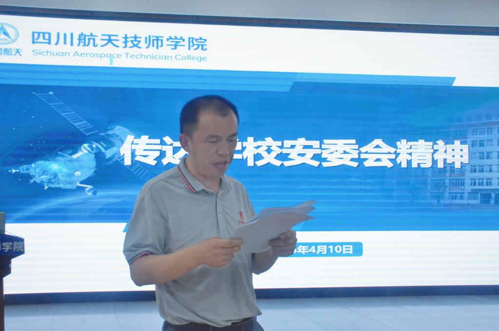 4月10日,四川航天技师学院2026年二季度(春季学期第二次)教职工大会在龙泉校区南阶梯教室召开,会议总结前期各项工作开展情况、传达上级工作要求、部署安排下一阶段重点任务,全体教职工参会。